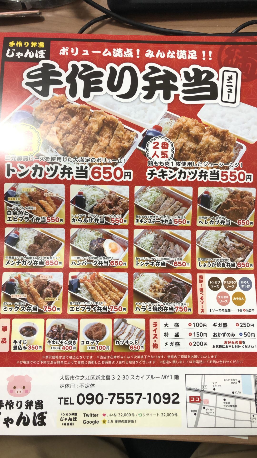 ホルモン・焼豚 大阪市住之江区新北島3丁目 手作り弁当じゃんぼ ホルモン焼き持ち帰り 手作り弁当じゃんぼ 大阪市住之江区新北島3丁目 2022年1月 チラシが入っていたので電話で注文しました! 下の方に!ほら!牛ホルモン焼きって書いてある!! お店所在地 住所:大阪府大阪市住之江区新北島3丁目2-30 電話番号:090-7557-1092 定休日:不定休 営業時間:以前ホルモン焼き有るらしいと噂を聞きつけて16時ごろ行ったら準備中でした。 (ご来店前に店舗にご確認 2022年01月24日