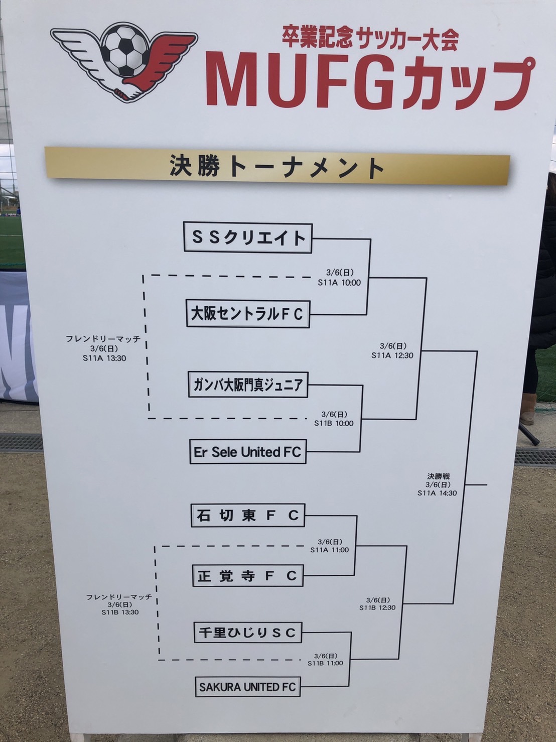 サッカー 2021年度 第15回卒業記念サッカー大会MUFGカップ 大阪大会 2021年度 第15回卒業記念サッカー大会MUFGカップ 大会概要 【大阪府大会出場チーム】 32チームとする。(8地区出場枠は各地区出場チーム数よって按分の上、決定する。) 【参加資格】 6年生以下の登録選手で地区代表になった際、大阪府大会の日程に参加する義務を有する。 【日程】 2022年3月5日(土曜日) 2022年3月6日(日曜日) 【大会会場】 J 2022年01月20日