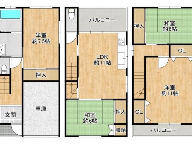 1階:41.08㎡ 2階:38.60㎡ 3階:38.60㎡